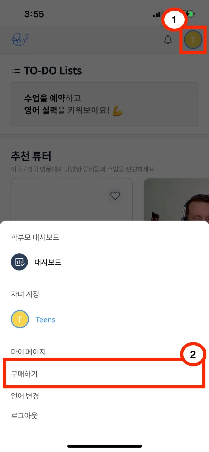 우측 상단의 프로필 클릭 → [구매하기] 클릭 → [수업권] 탭 확인 → 우측의 [화폐단위] 선택