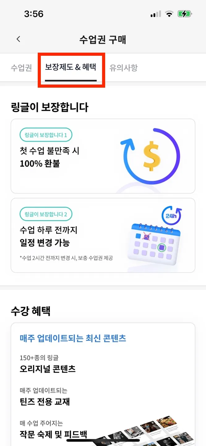 [보장제도 & 혜택] - 다양한 보장 제도 및 링글 Teens만이 제공하는 혜택을 보실 수 있습니다.