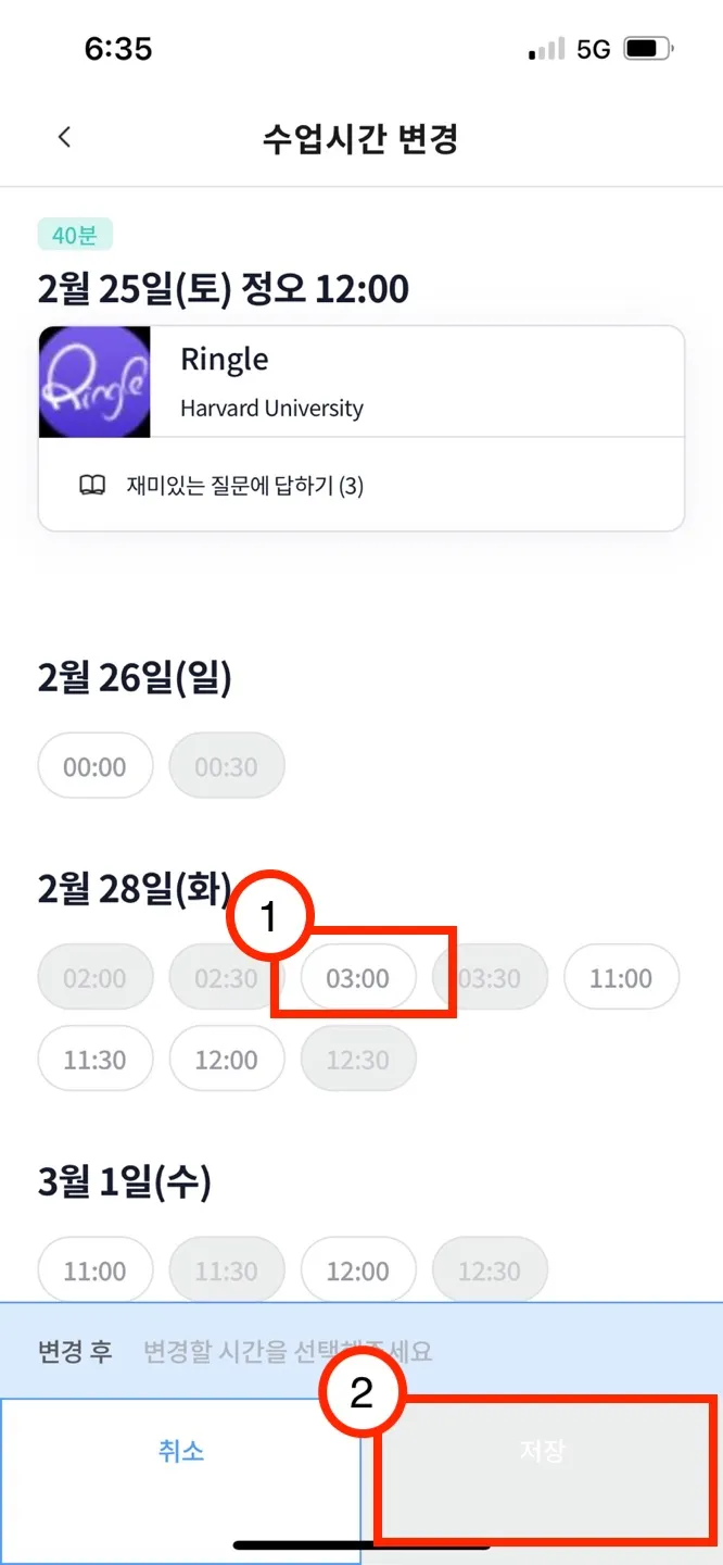 2. 수업 시간 변경하기