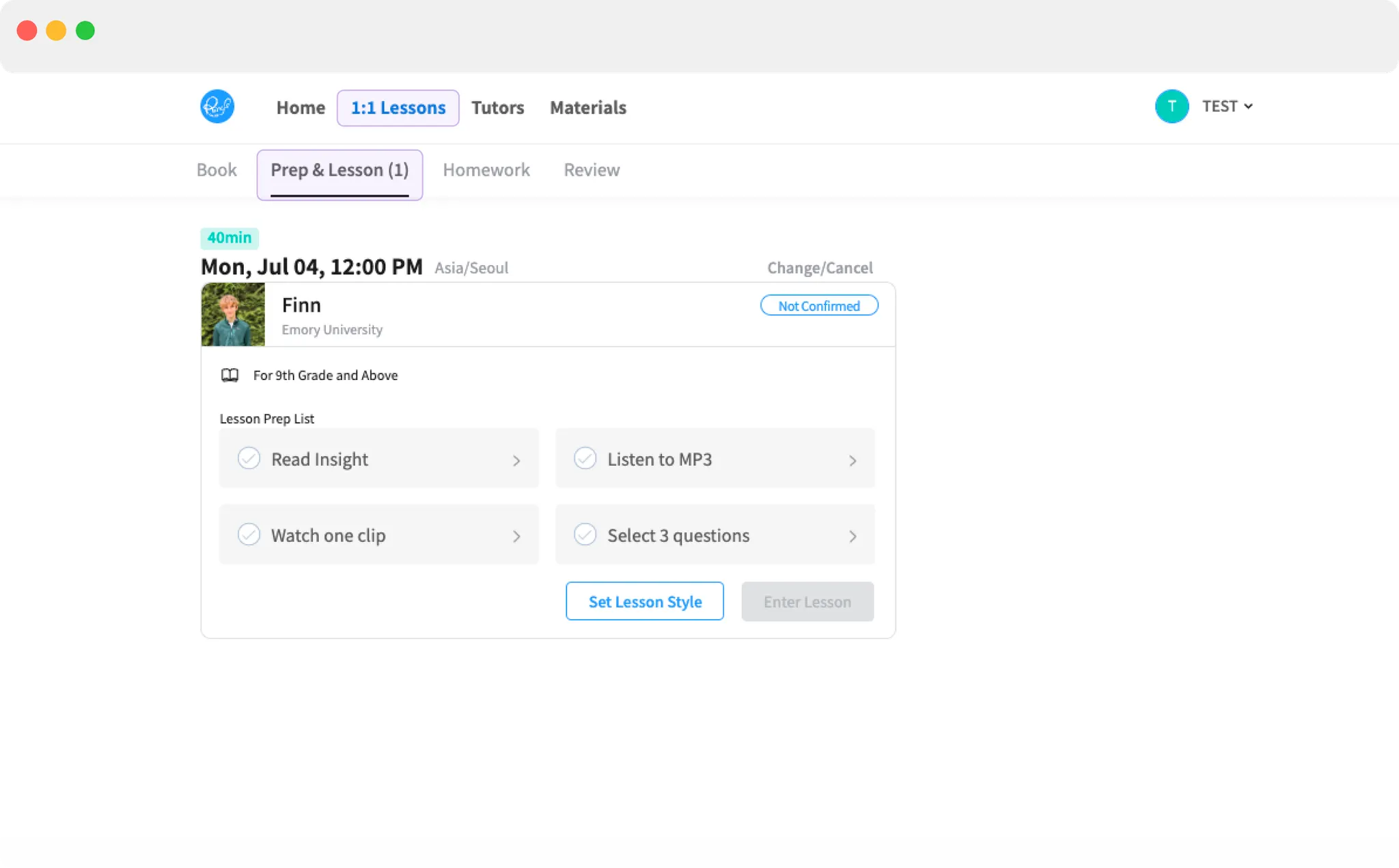 1. [1:1 수업] → [예습&수업] → [수업 입장] 버튼 클릭