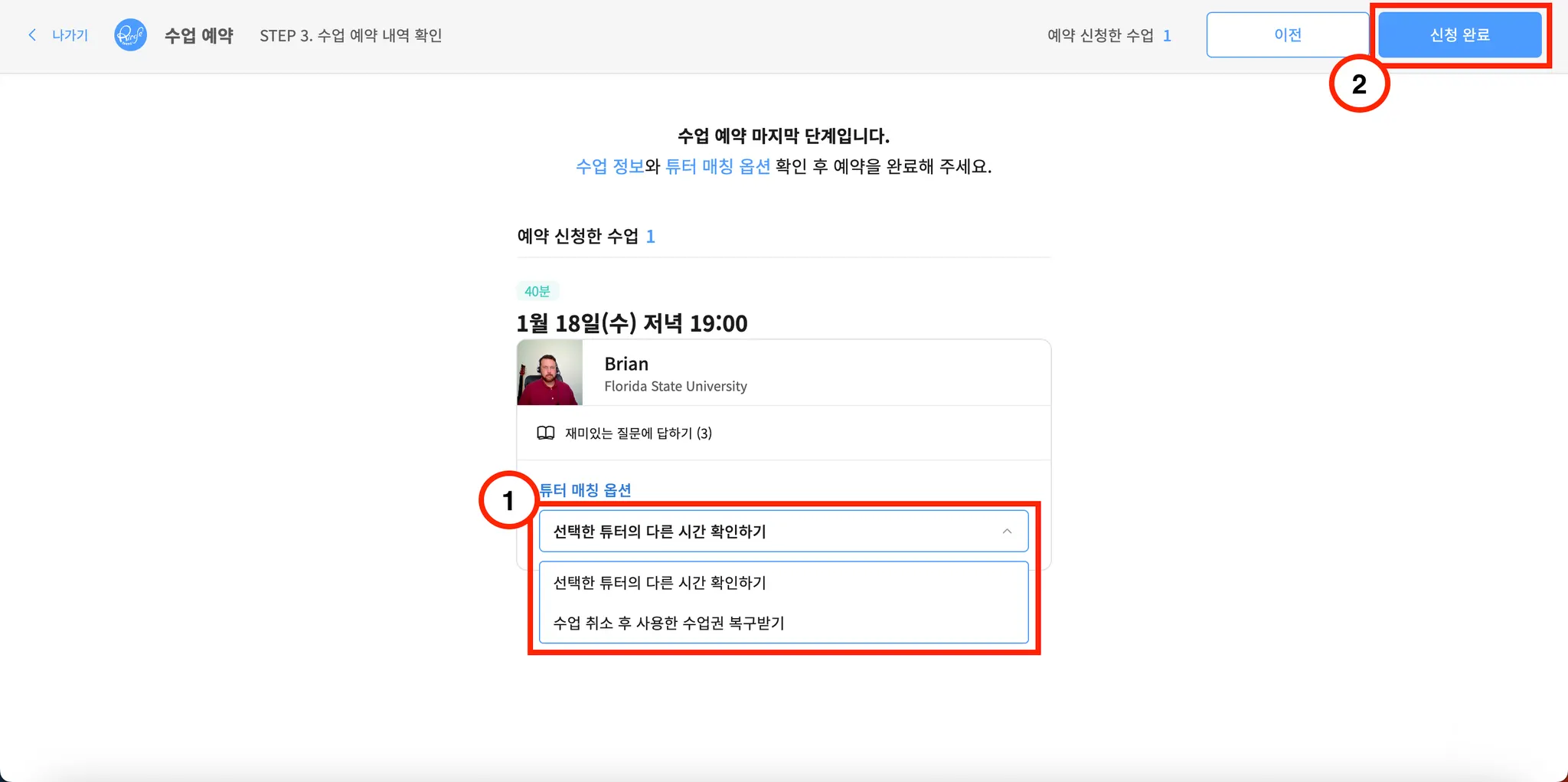 튜터가 수업을 확정 완료한 이후에는 수업 취소 후 재예약이 필요