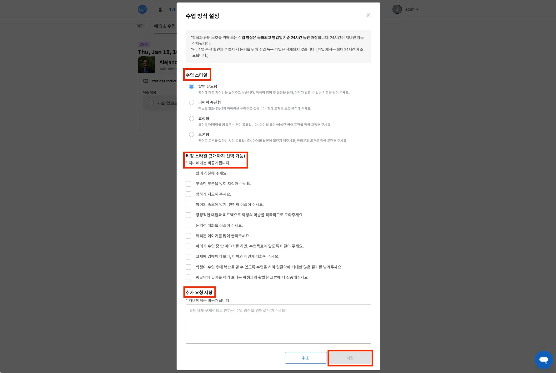 * 튜터가 미리 설정된 수업 방식을 보고, 자녀 분에게 딱 맞는 수업을 제공해드립니다 :)